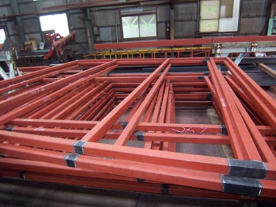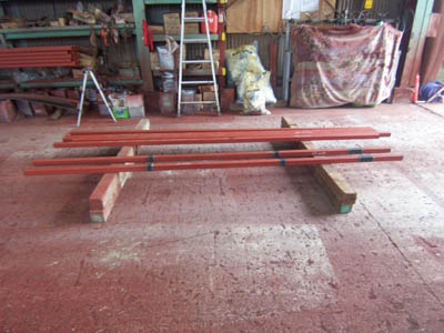 福岡の鉄骨屋さんなので、現地にたくさん足を運べるわけでなく精度が心配でしたが、真っ直ぐにやってくれました。いっぱいあるので平積みにしてあります。